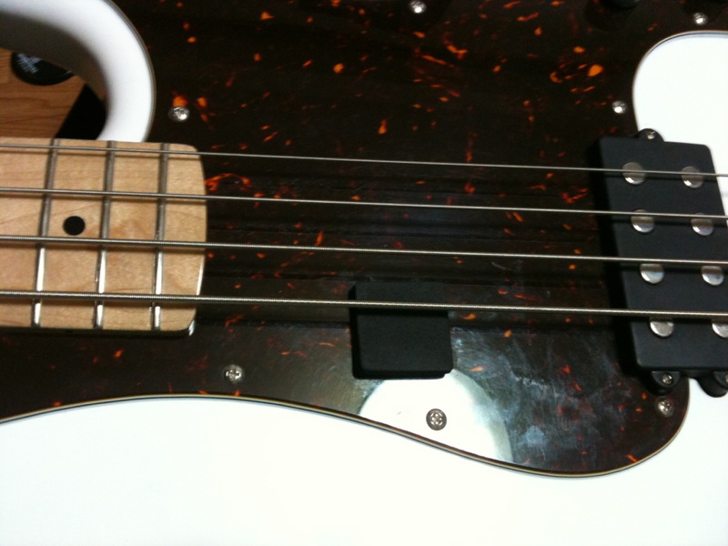 マナカナ好きのふとっちょの友人にお安く作ってもらったベースがなんだか弾き辛かったので椅子の足に貼る傷防止シールで指置きを作りました。